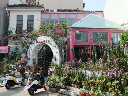 第一次經過這條街,對這家餐廳的外觀有點驚喜的感覺,也許真的也很吸引人,所以就找了一天特別來用餐。巴黎羅浮宮Grand Louvre的玻璃金字塔就蓋在這棟日式洋房上,粉紅色的牆壁框架點綴出來的感覺到底要歸屬在哪一種風格上呢?邊想著就想進去看看屋內是什麼樣子。